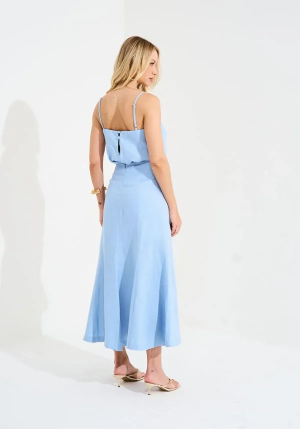 As alças finas com reguladores garantem ajuste perfeito ao corpo, valorizando o colo com delicadeza. Um modelo leve, fresco e atemporal, ideal para compor looks elegantes nos dias mais quentes.