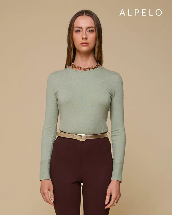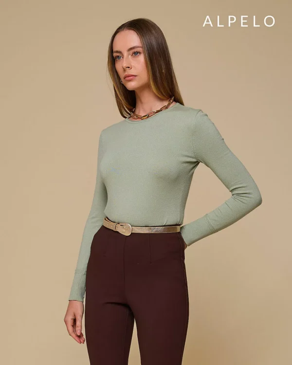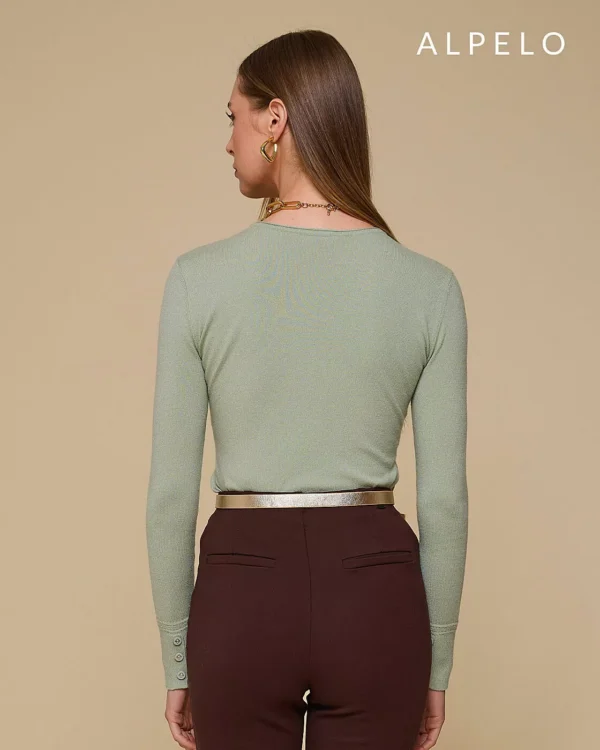 Blusa retilínea gola careca e botões em strass Alpelo