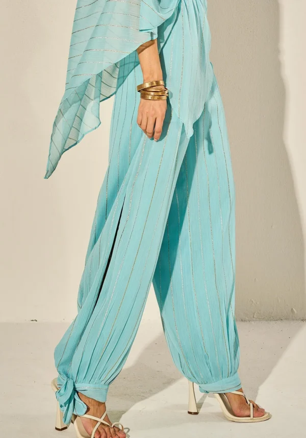 O forro até a metade do comprimento garante conforto e segurança enquanto a leve abertura na perna adiciona um toque moderno à peça. O detalhe de amarrar no tornozelo traz charme e personalidade a peça.