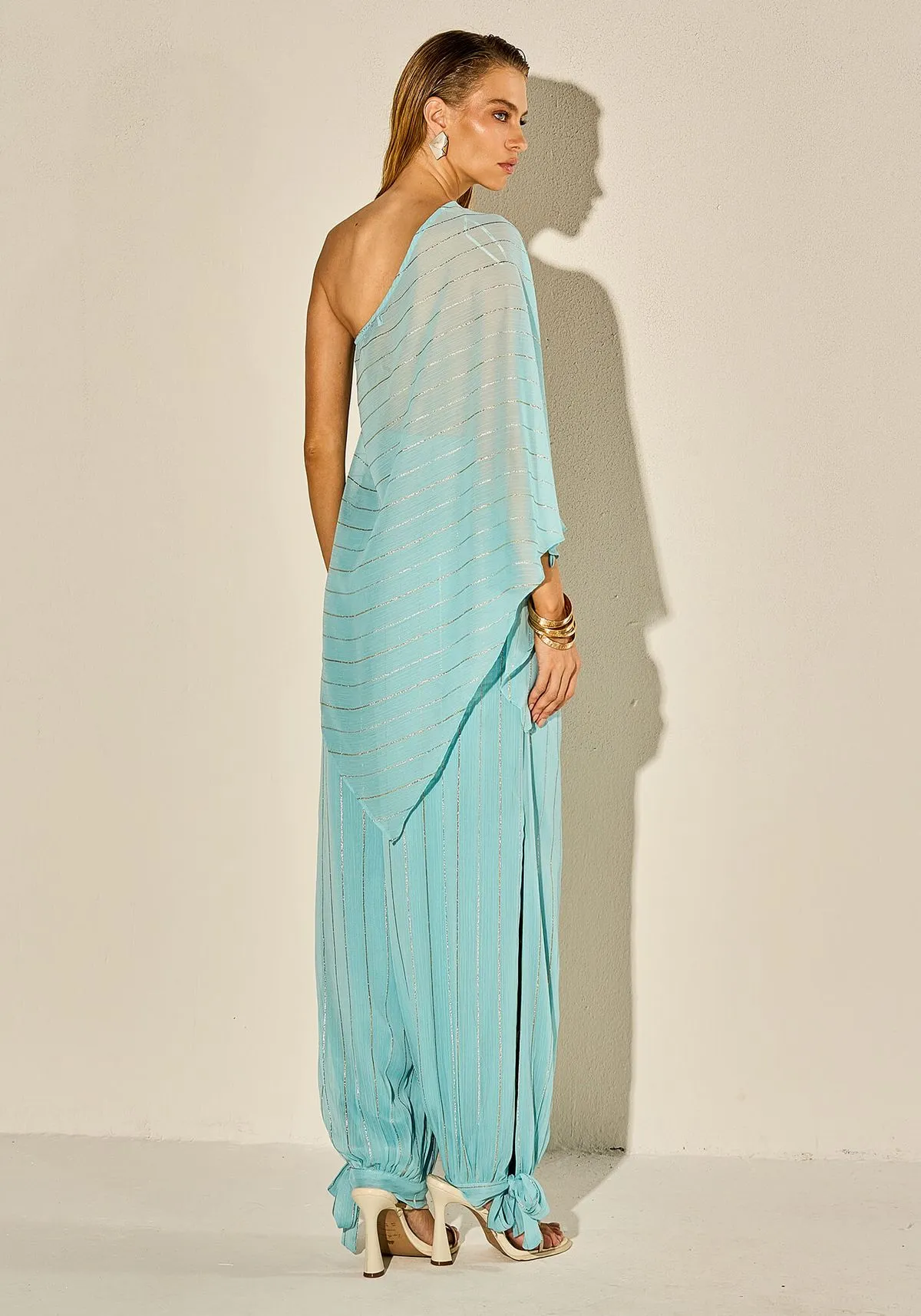 O forro até a metade do comprimento garante conforto e segurança enquanto a leve abertura na perna adiciona um toque moderno à peça. O detalhe de amarrar no tornozelo traz charme e personalidade a peça.