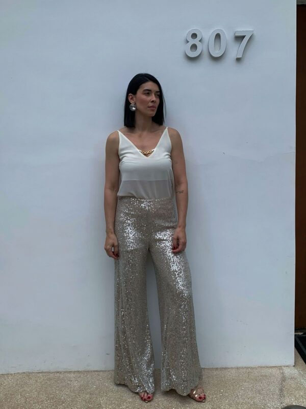 Ideal para festas, eventos especiais ou looks noturnos que pedem destaque, essa pantalona é a combinação perfeita de conforto e glamour.