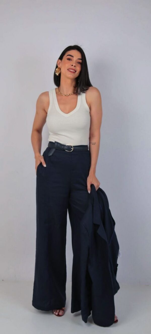 Com corte amplo e elegante, esta calça pantalona traz sofisticação e conforto ao visual.
