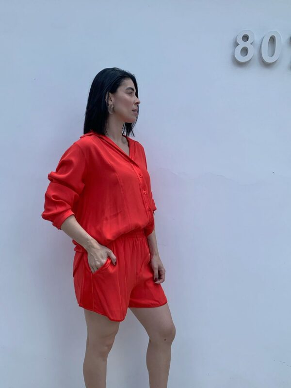 A camisa de modelagem solta oferece caimento leve e elegante, enquanto o shorts com cintura ajustada valoriza a silhueta com conforto. Um conjunto versátil que pode ser usado junto, para um look poderoso, ou separadamente, em composições cheias de estilo.