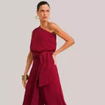 Macacão Bordado Fatima. Confeccionado em tecido nobre com viscose, recebe bordado exclusivo em fio de lurex, que traz brilho sutil e refinado. O Macacão Bordado Fátima é uma peça que une elegância e modernidade em cada detalhe. Seu design de um ombro só, aliado à faixa no mesmo tecido bordado, valoriza a silhueta de forma sofisticada. O shape Aladdin acrescenta leveza e movimento, com proporções modernas que fogem do óbvio. Com forro interno para maior conforto e zíper lateral de acabamento impecável, é um look pensado para ocasiões especiais que pedem impacto e estilo Zíper Lateral Cinto faixa bordado Shape Aladdin