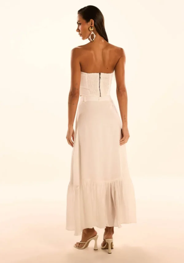 Ombros à mostra | Drapeado frontal elegante |Costas com lastex para melhor ajuste |Fechamento por zíper invisível.