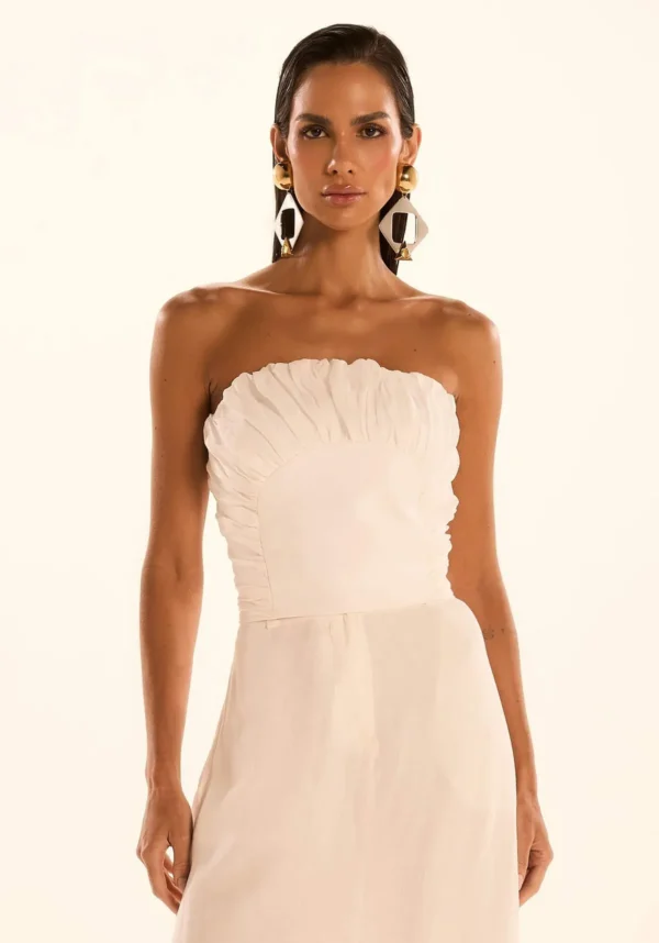 Com ombros à mostra, ele valoriza o colo e traz drapeado frontal que garante um caimento elegante. O lastex nas costas oferece conforto e adaptação ao corpo, enquanto o fechamento por zíper invisível garante praticidade e bom ajuste.Tecido leve em cambraia