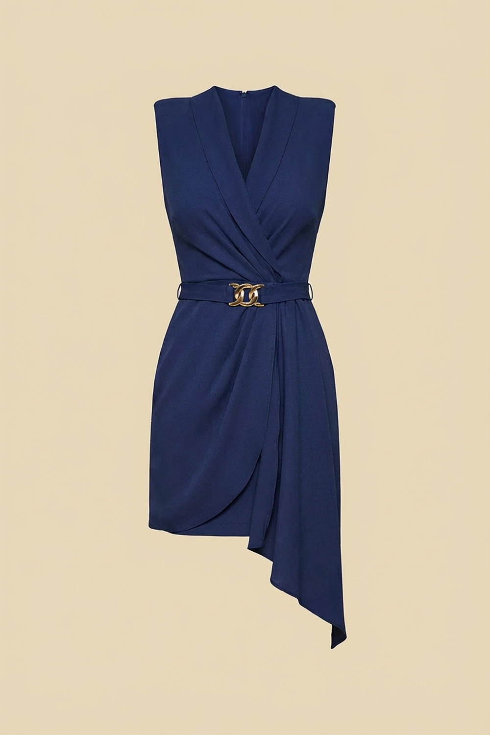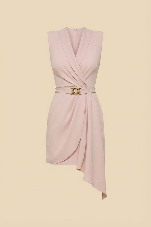 Este vestido é a escolha perfeita para quem busca elegância com modernidade. O decote transpassado valoriza o colo, enquanto o cinto com fivela acentua a cintura e traz um toque de sofisticação. O detalhe drapeado lateral alonga a silhueta e adiciona movimento ao visual. Sem mangas e com comprimento acima do joelho, o modelo possui caimento impecável tanto na frente quanto nas costas