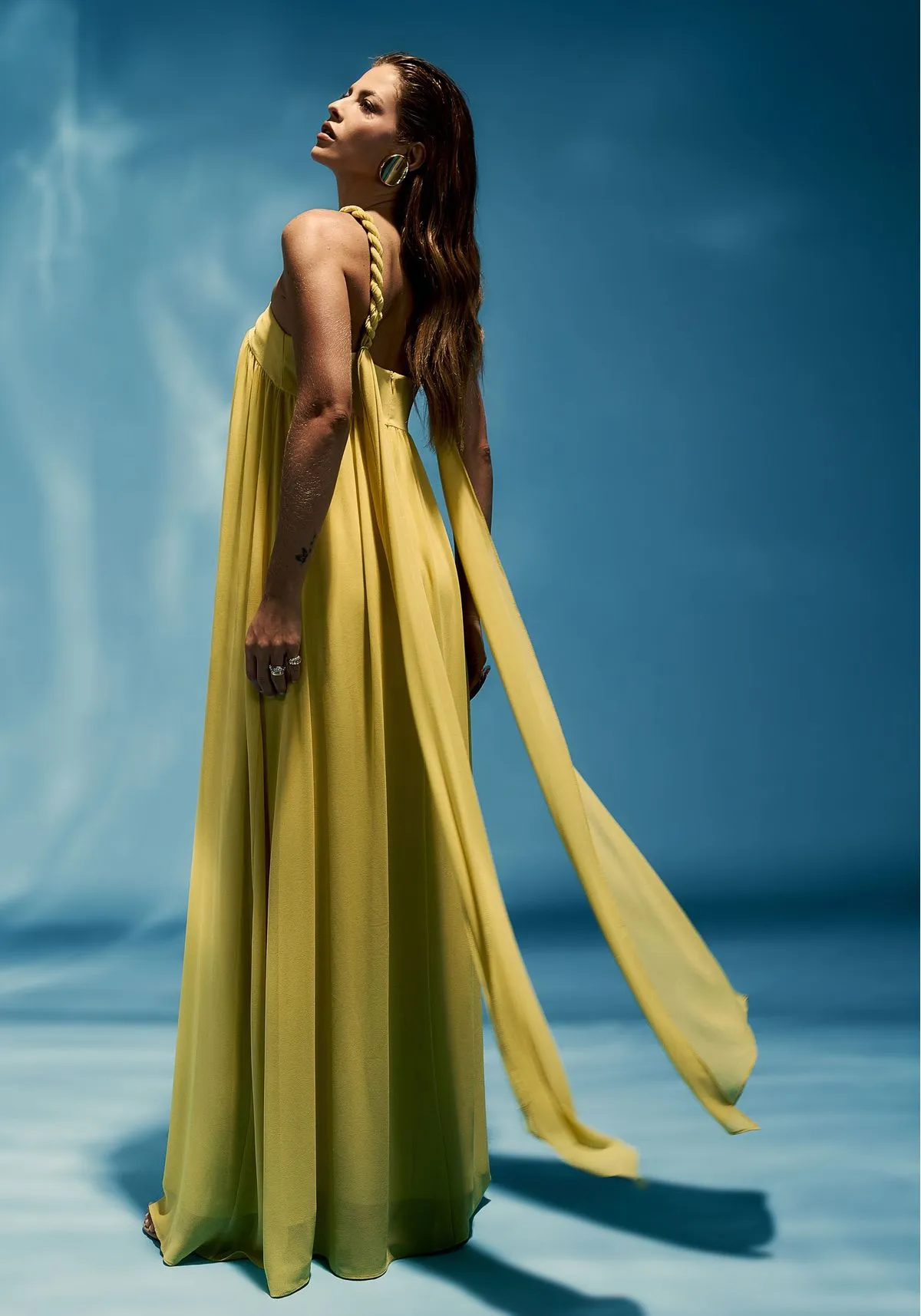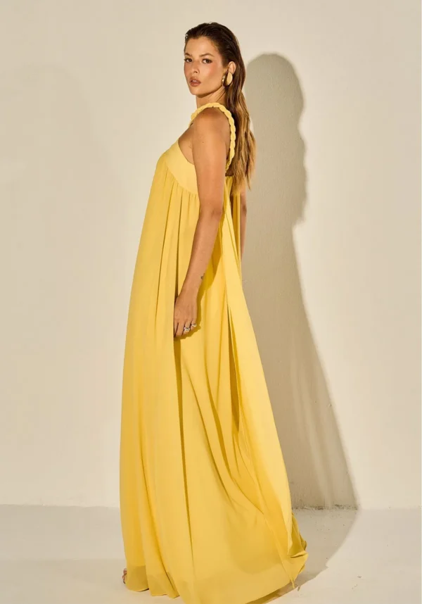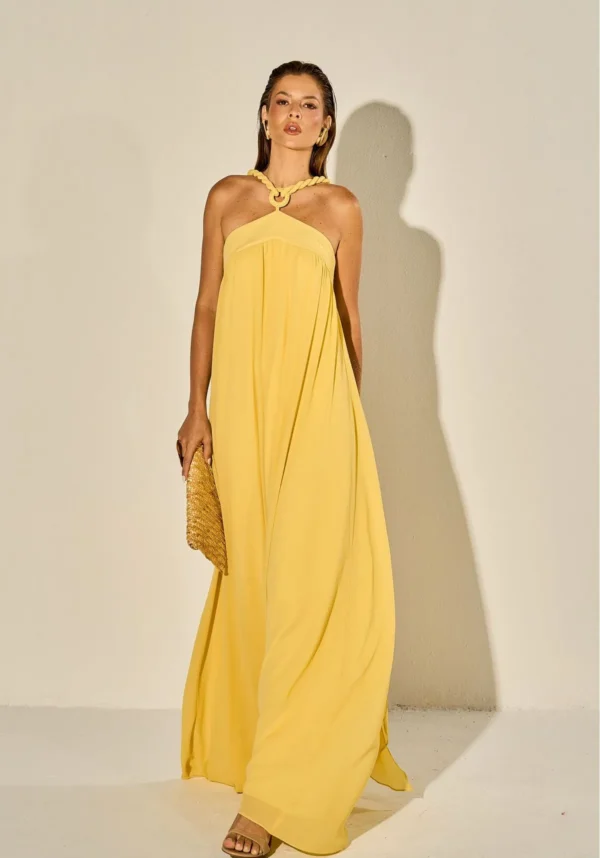 O vestido Ayla é leve, elegante e perfeito para ocasiões especiais. Confeccionado em tecido fluido, proporciona movimento e conforto ao vestir.