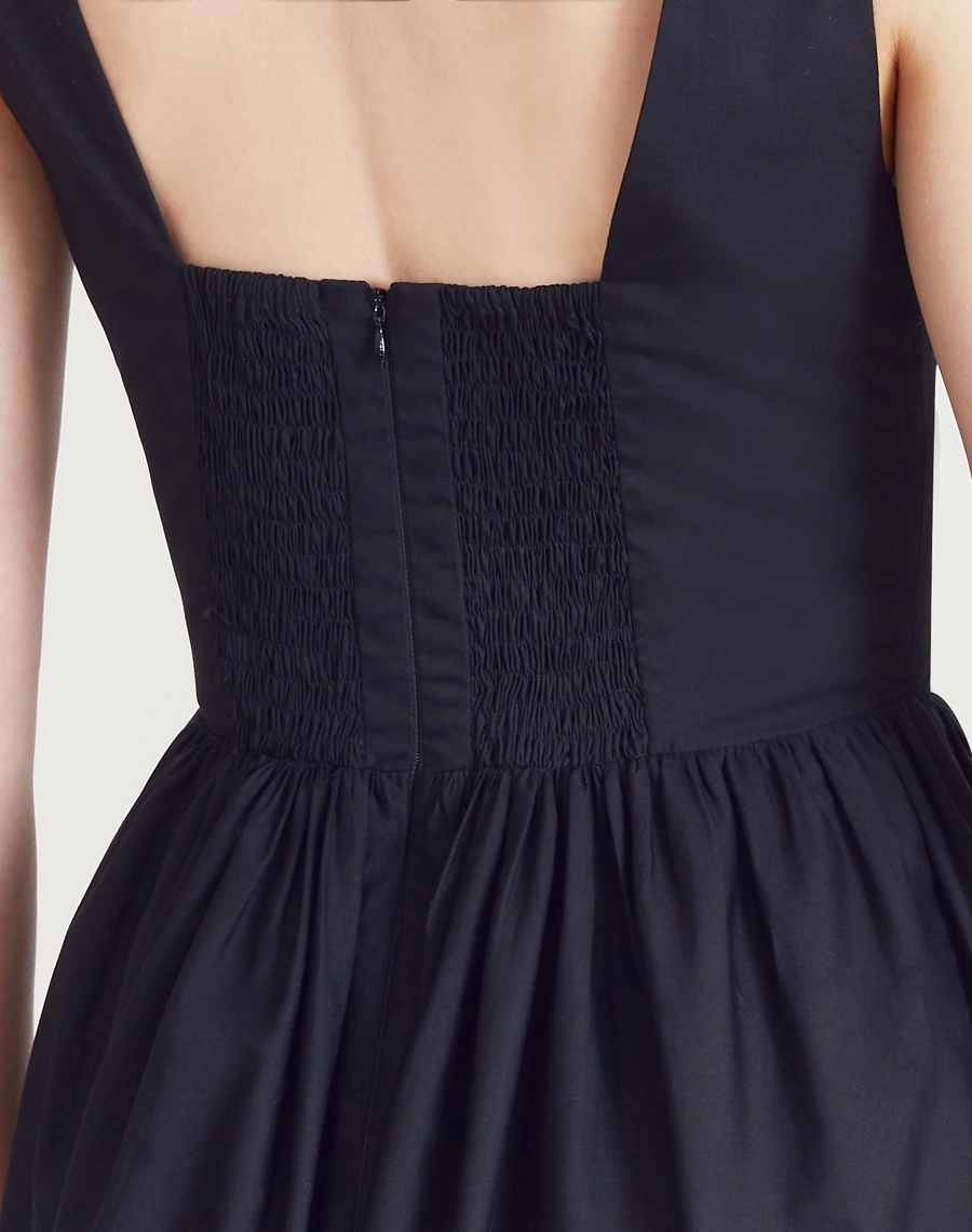 Com alças largas, decote V, pala na cintura e lastex nas costas para um caimento que valoriza a silhueta. A modelagem evasê com bolsos laterais garante conforto e praticidade. O fechamento é por zíper invisível nas costas.